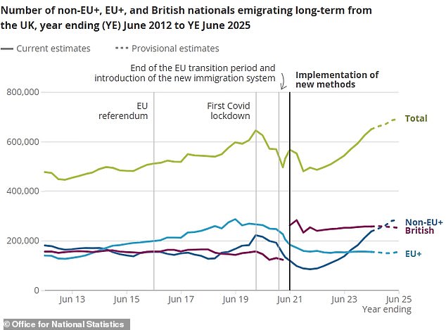 La inmigración de ciudadanos británicos seguirá rondando los 250.000 al año a partir de 2021, pero no es posible comparar cifras anteriores a 2021 debido a un cambio en la forma en que la ONS estima esta categoría.