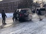 Un tercer video desgarrador muestra a una mujer que dice ser la esposa del automovilista que fue asesinado a tiros rompiendo a llorar en el suelo.