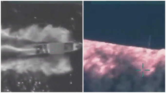 El Secretario de Guerra también compartió un vídeo del ataque en X (anteriormente Twitter), en el que se ve un barco explotando en llamas a través del punto de mira de una cámara.