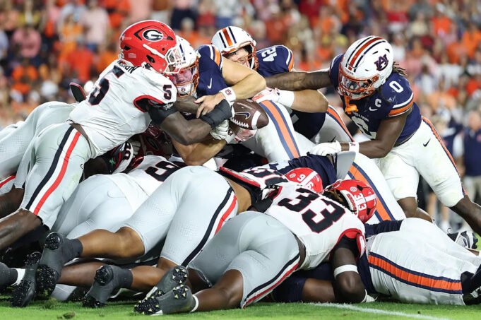 Pellizca una hoja de papel entre tus dedos. Eso es lo cerca que estuvo Auburn de establecer una ventaja de tres posesiones sobre los Dawgs con poco más de 90 segundos restantes en la mitad. En cambio: un desastre que asfixió a Auburn en una avalancha de banderas amarillas y oportunidades perdidas.