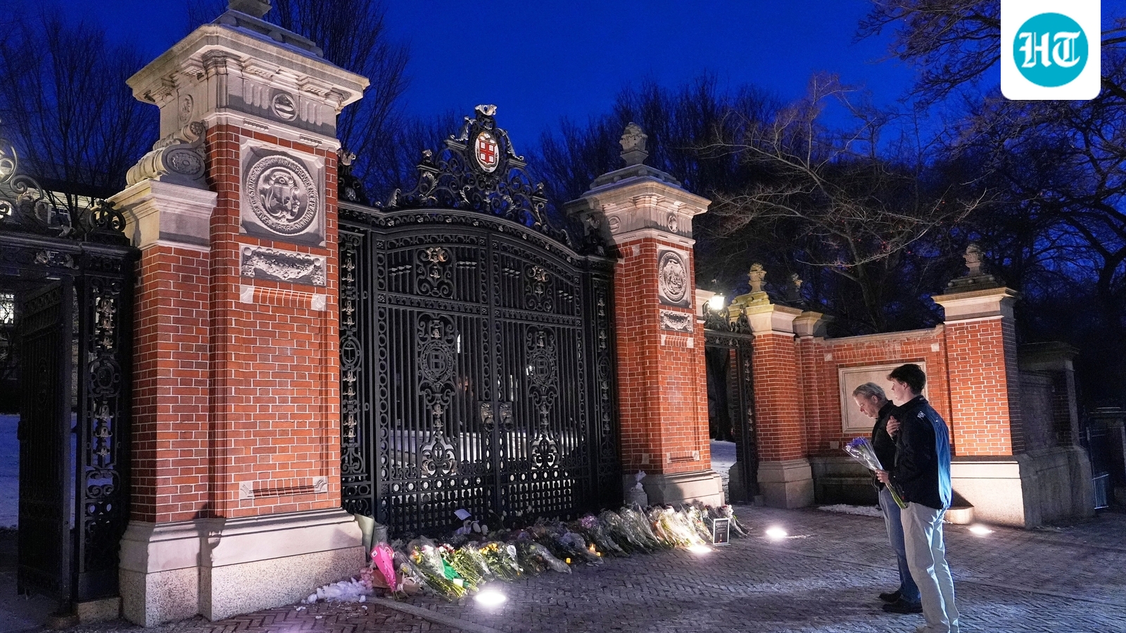 Los visitantes hacen una pausa en un monumento improvisado para las víctimas en Van Wickle Gate de la Universidad de Brown, el lunes 15 de diciembre de 2025, en Providence (Foto AP/Robert F. Bukaty) (AP)