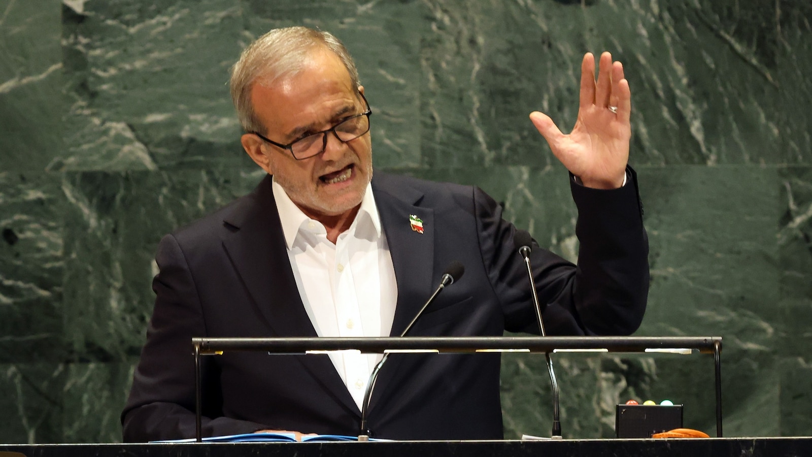 El presidente de Irán Masoud Pezeshkian se dirige a la Asamblea General de las Naciones Unidas (ONU) durante la 80ª sesión del evento anual el 24 de septiembre de 2025 en Nueva York.