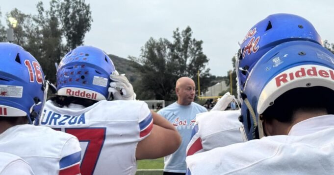 De pie bajo cuatro palmeras en el área cuádruple de Calabasas High, los jugadores de fútbol de Los Alamitos tienen los ojos entrenados en la cara del entrenador Ray Fenton durante más de cinco minutos ininterrumpidos.