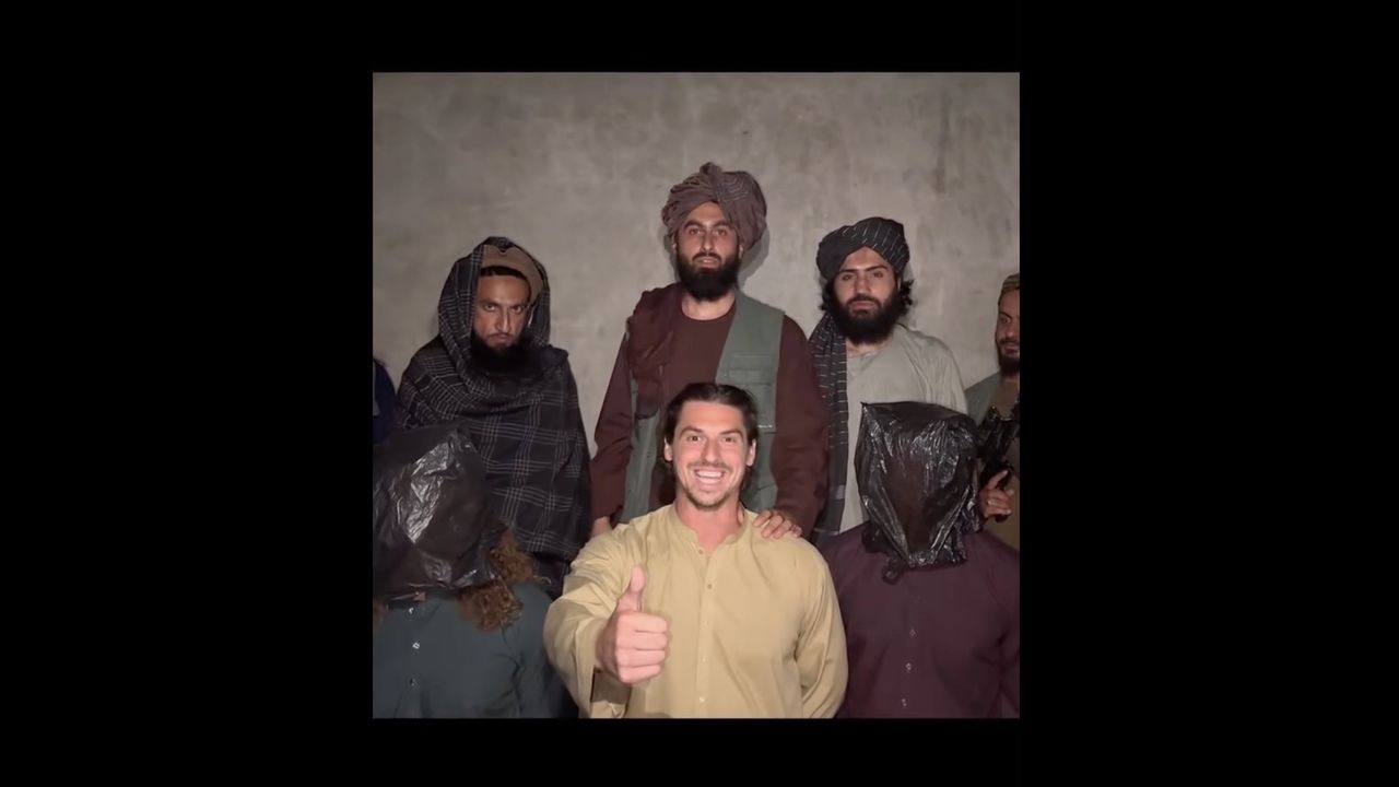 Por suerte, este vídeo tomó un rumbo diferente. El orador quita la bolsa de la cara del hombre arrodillado frente a él, quien luego muestra una sonrisa de Hollywood y levanta enfáticamente el pulgar. “¡Bienvenidos a Afganistán!” “, Dice directamente a la cámara, después de lo cual comienza a reproducirse un montaje de occidentales posando para fotografías en cañadas de montaña y haciendo flexiones sobre los cañones de los tanques.