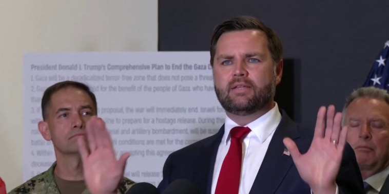 El vicepresidente JD Vance visitó Israel mientras la administración Trump lucha por mantener el frágil alto el fuego que ayudó a negociar entre Israel y Hamás, tras acusaciones mutuas de violar el acuerdo. Matt Bradley, de NBC News, tiene lo último sobre cómo los principales negociadores estadounidenses se reúnen con rehenes recientemente liberados en Israel.