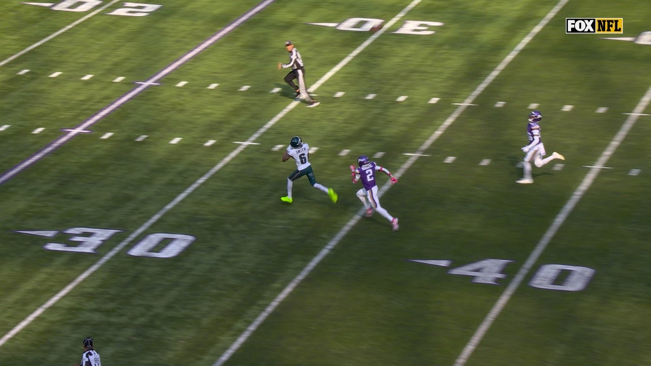 Jalen Hurts encontró a DeVonta Smith para un touchdown de 79 yardas, ampliando la ventaja de los Philadelphia Eagles sobre los Minnesota Vikings.