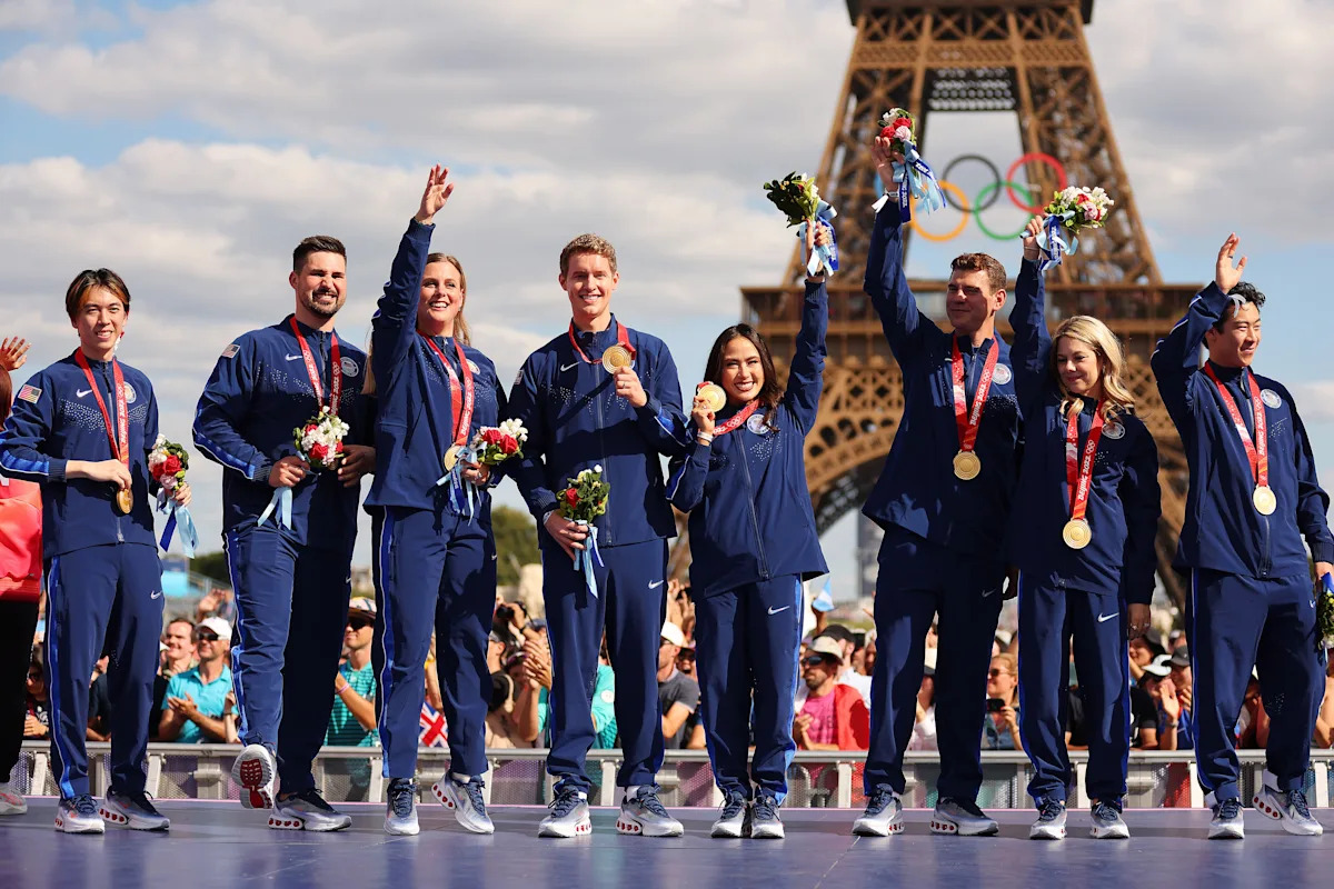 Bajo un brillante cielo azul parisino, el equipo entró en Champions Park, con las manos levantadas y sonrisas en los rostros de todos mientras sonaba el himno nacional. La ceremonia tuvo lugar pocas semanas después de que Chock y Bates se casaran. Es seguro decir que tuvieron una muy que tengas un buen verano.