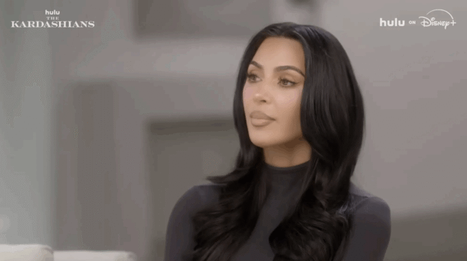 Kim Kardashian habla con la cámara en un segmento confesional de la temporada 7 de “The Kardashians”. (Captura de pantalla de Hulu / YouTube)