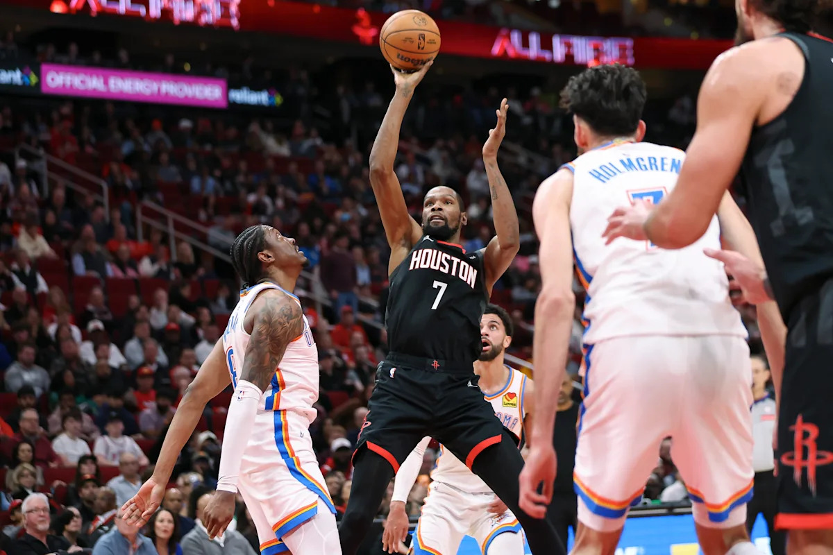 Kevin Durant tuvo problemas para volver a verse bien contra Oklahoma City el jueves, una instantánea de los crecientes problemas ofensivos de Houston.