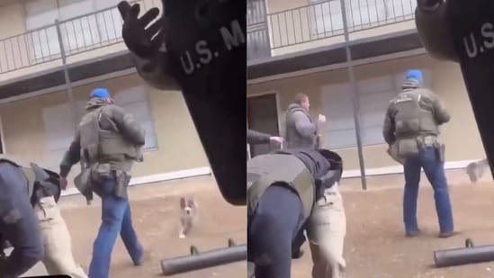 El video, grabado por un residente del complejo de apartamentos y luego publicado en las redes sociales, muestra a varios agentes federales realizando una operación junto a una unidad K-9. Mientras un perro pequeño corre hacia los oficiales ladrando, un alguacil adjunto da un paso adelante y empuja al animal.