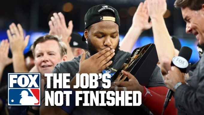 Vea la ceremonia completa de presentación del trofeo mientras los Toronto Blue Jays celebraban su victoria sobre los Seattle Mariners en la Serie de Campeonato de la Liga Americana, capturando su primer lugar en la Serie Mundial desde 1993.