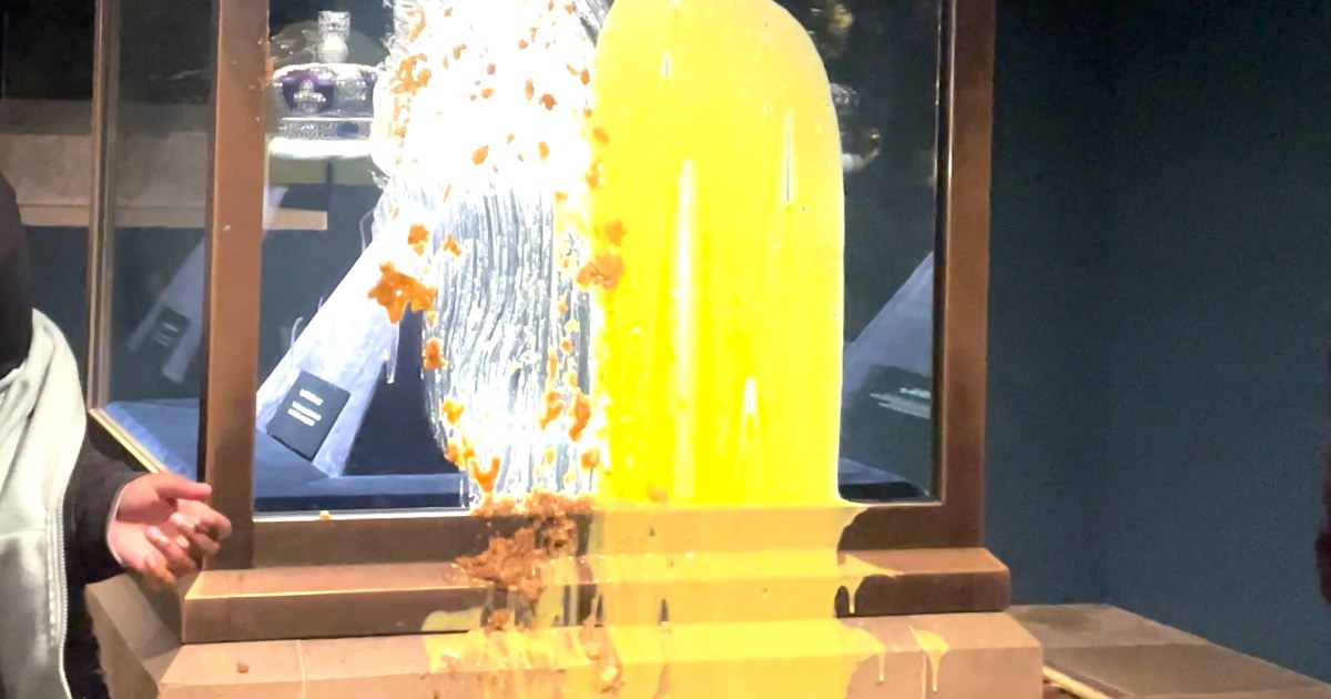 Manifestantes manchan comida en escaparate de las Joyas de la Corona Británica