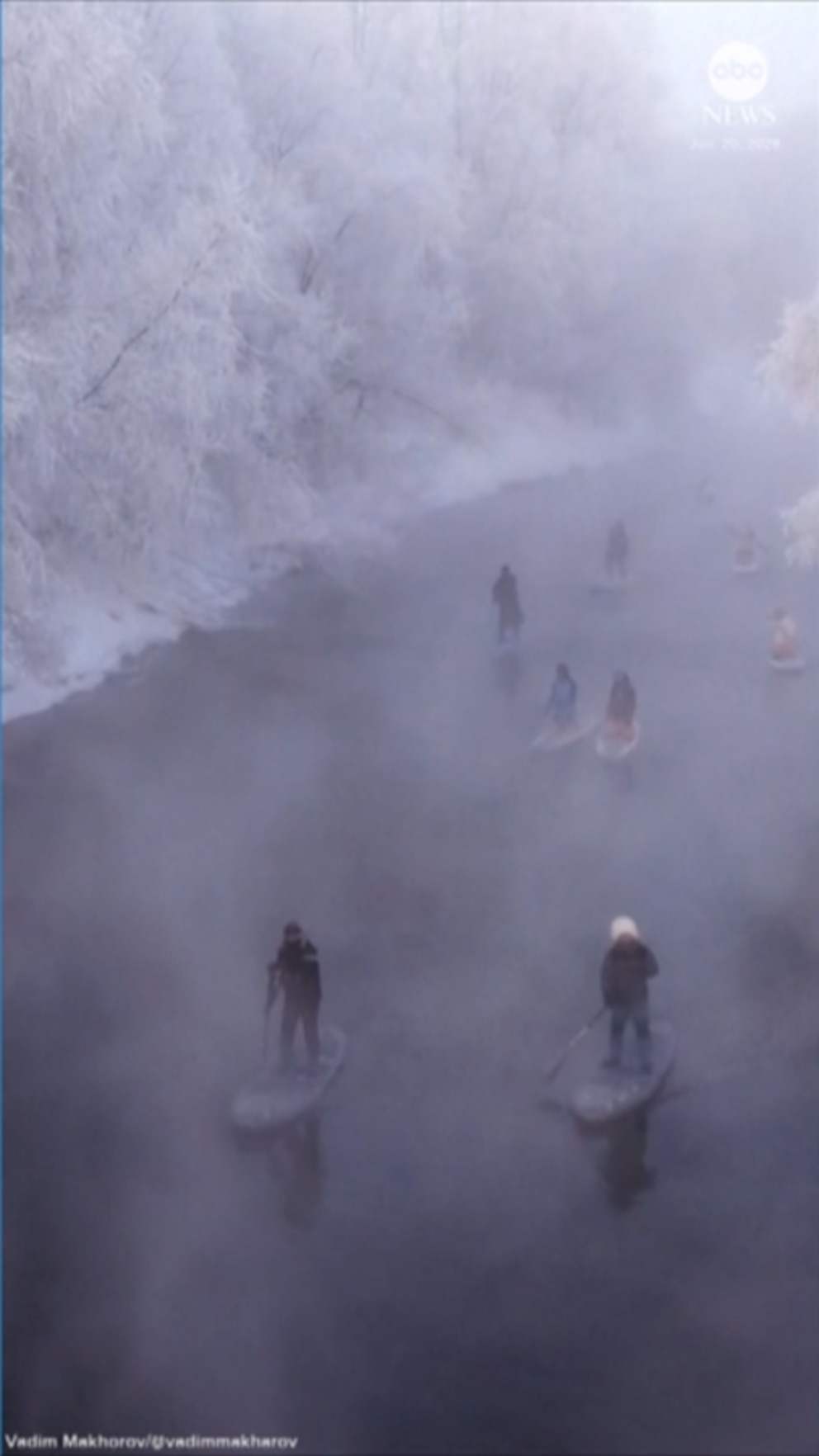 Los aficionados rusos no se dejaron intimidar por las temperaturas de -40 grados centígrados mientras se dirigían hacia el río Ob.