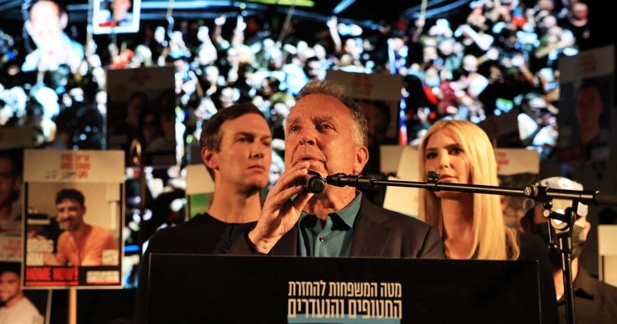 El nombre del primer ministro israelí, Benjamín Netanyahu, provocó abucheos de la multitud en la Plaza de los Rehenes durante un discurso del enviado especial de Estados Unidos, Steve Witkoff, mientras que el nombre del presidente Trump provocó aplausos y cánticos de “Gracias, Trump”.