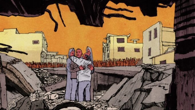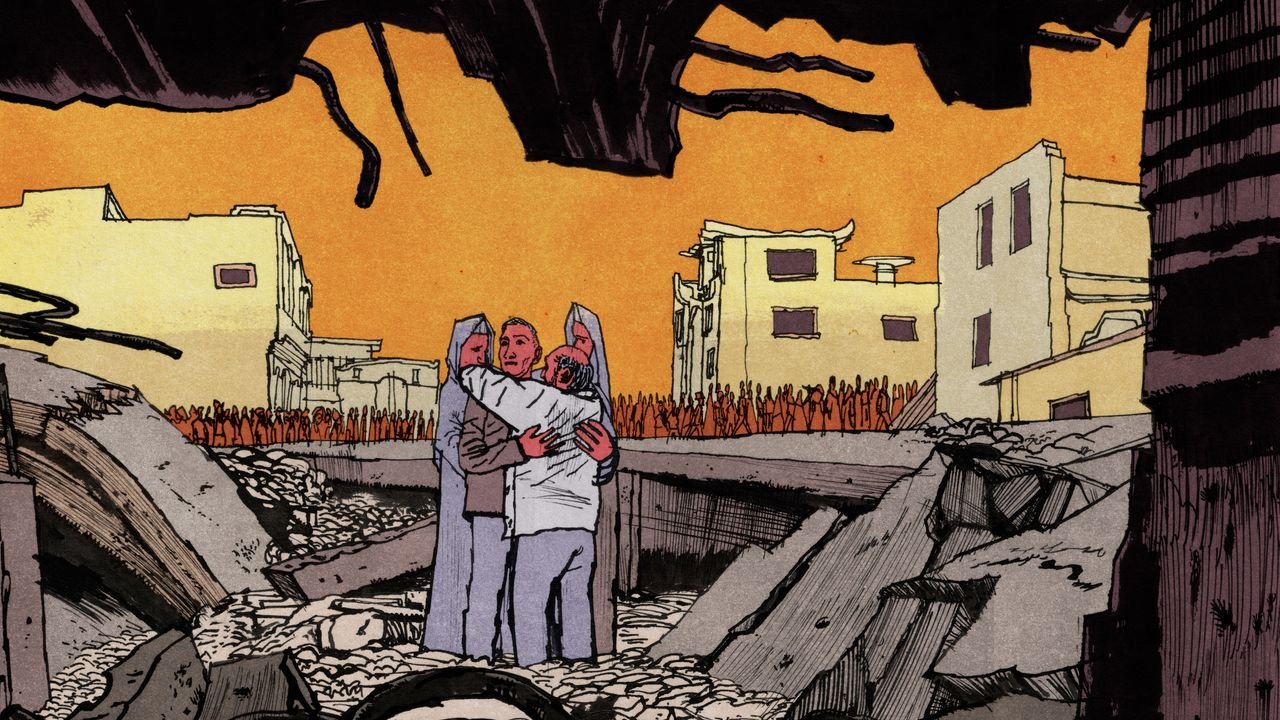 Después de que Khaled fuera finalmente liberado, caminó ocho kilómetros a pie a través de barrios devastados desde el sur de Gaza hasta un pequeño pueblo cerca de Deir al-Balah. Estaba exhausto, pero cuanto más se acercaba a su esposa e hijos, más emocionado se sentía. Finalmente llegó a un grupo de tiendas de campaña donde vivía su familia extendida. Su pequeña hija fue la primera en verlo y él la levantó en el aire con alegría. Luego sus otros seres queridos corrieron hacia él y lo envolvieron en abrazos.