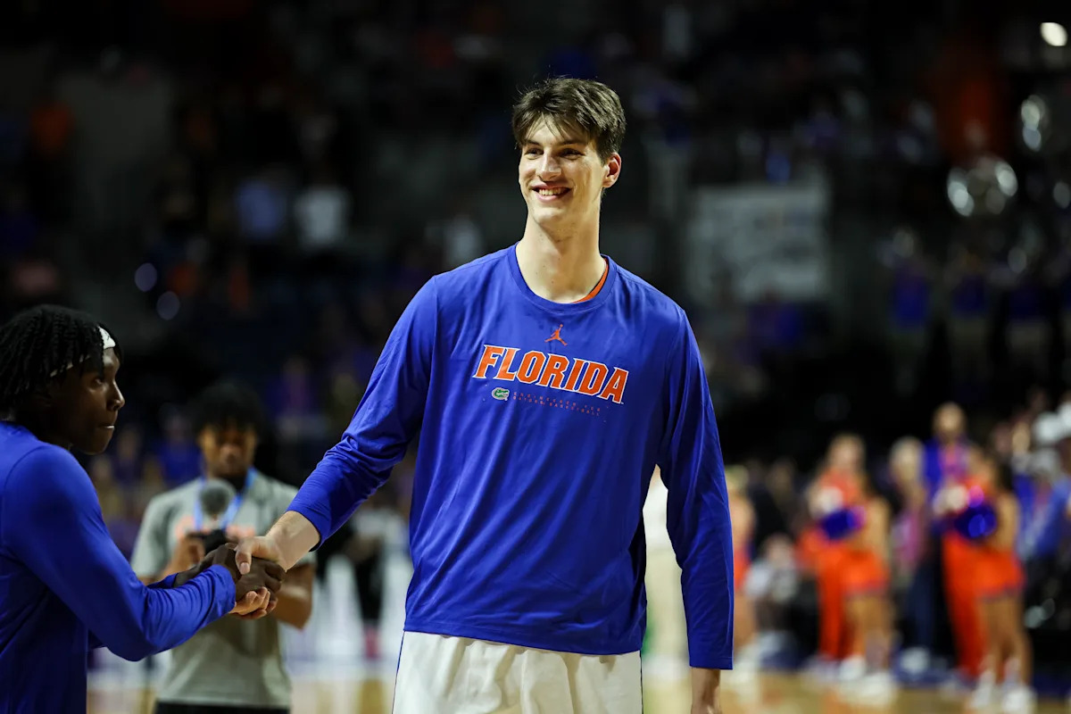 El pívot de 7 pies 9 pulgadas lanzó una volcada increíblemente fácil en el último minuto de la aplastante victoria en el Stephen C. O’Connell Center en Gainesville el miércoles que lo convirtió en el jugador más alto en la historia del baloncesto universitario en anotar una canasta. Naturalmente, el banco de los Gators lo perdió.