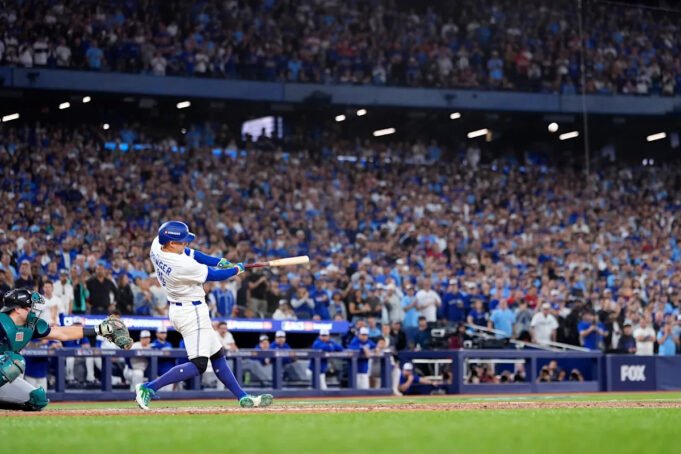 Esta dinámica se ha intensificado durante el último mes, a medida que estos Azulejos, en su mayoría estadounidenses, han llegado a octubre, galvanizando a todo Canadá en el camino. El béisbol es muy importante aquí en este momento, con el logotipo del pájaro y la hoja de arce pegados por toda la ciudad. Mark Carney, el primer ministro canadiense, incluso hizo una aparición en el Rogers Center durante el día de práctica, manteniendo una larga conversación con Schneider, el gerente general Ross Atkins y el presidente del equipo Mark Shapiro.