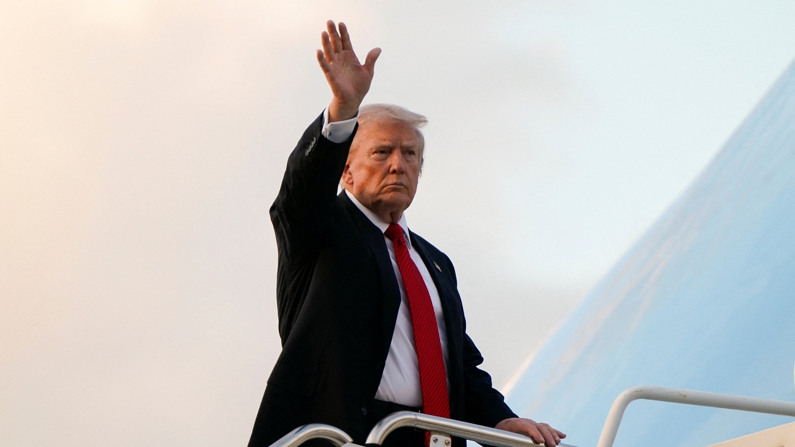 El presidente Donald Trump saluda mientras aborda el Air Force One en ruta a Washington (REUTERS)