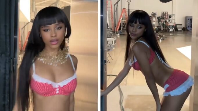 La ganadora del Grammy, de 23 años, sorprendió con un diminuto bikini de lunares que recuerda a un traje de sirvienta, pavoneándose y retorciéndose en un escenario al son de su nueva canción, “Chanel”.