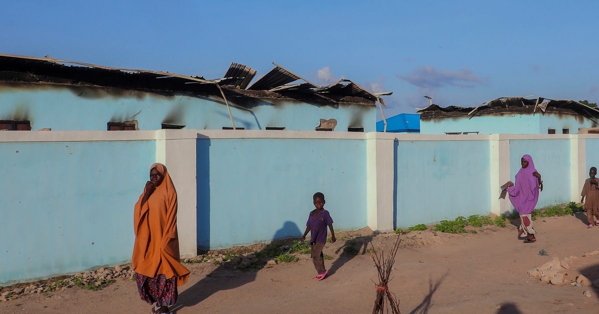 La gente pasa junto a casas quemadas tras un ataque de Boko Haram en Darul Jamal, Nigeria, el 6 de septiembre de 2025.archivo AP