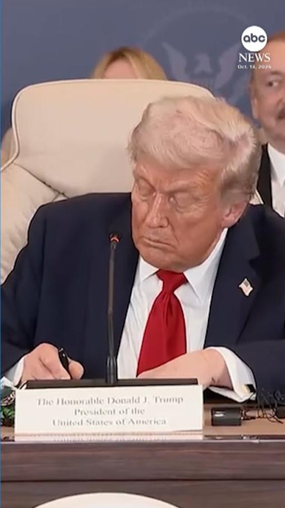 El presidente Trump participó en una ceremonia de firma en la cumbre de paz en Sharm el-Sheikh, Egipto, que marcó la primera fase del acuerdo de alto el fuego entre Israel y Hamás.