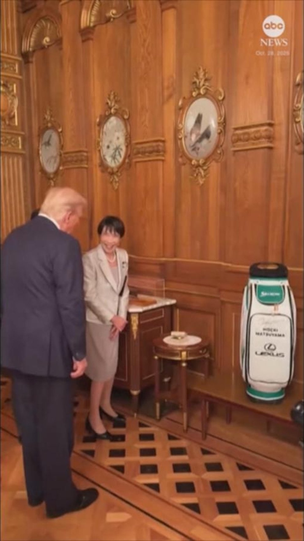 El primer ministro japonés, Sanae Takaichi, entregó al presidente Trump el putter del difunto primer ministro japonés, Shinzo Abe, durante su visita a Tokio.
