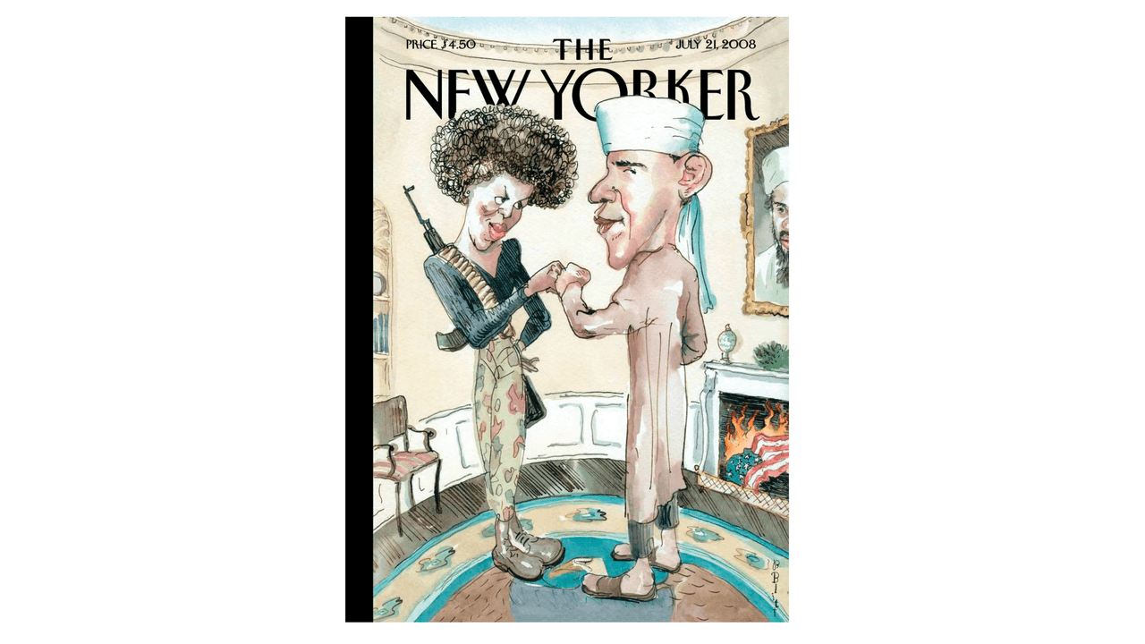 Estaba en un taxi amarillo en pleno verano cuando lo vi. En ese momento, con veintitrés años, a veces hojeaba artículos sobre política en mi voluminoso BlackBerry mientras caminaba por Central Park camino a mi primer trabajo real, recaudar dinero para la campaña presidencial de Barack Obama en 2008. Por lo general, el viaje era tranquilo. Esta vez abrí un enlace a un artículo en Política (todavía un medio de comunicación advenedizo en ese momento) sobre una controversia que rápidamente estaba ganando impulso. Al parecer la última portada de El neoyorquino Fue una locura.