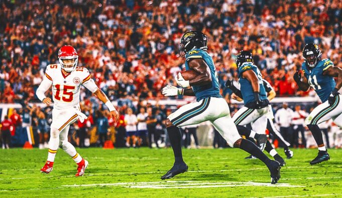 El partido estuvo lejos de terminar, pero una hora después, los Jaguars obtuvieron otro tocado, el cuarto de Lawrence cayendo mientras él tropezaba con el pie de un guardia, luchando para levantarse, luego sumergirse en el área de gol para el puntaje ganando con 23 segundos para jugar. Los Jaguars, una vez lideraron 14-0, ganaron una victoria de 31-28 contra los campeones del título de la AFC, mejorando en 4-1 en un comienzo sorprendente bajo la dirección del entrenador del primer año, Liam Coen.